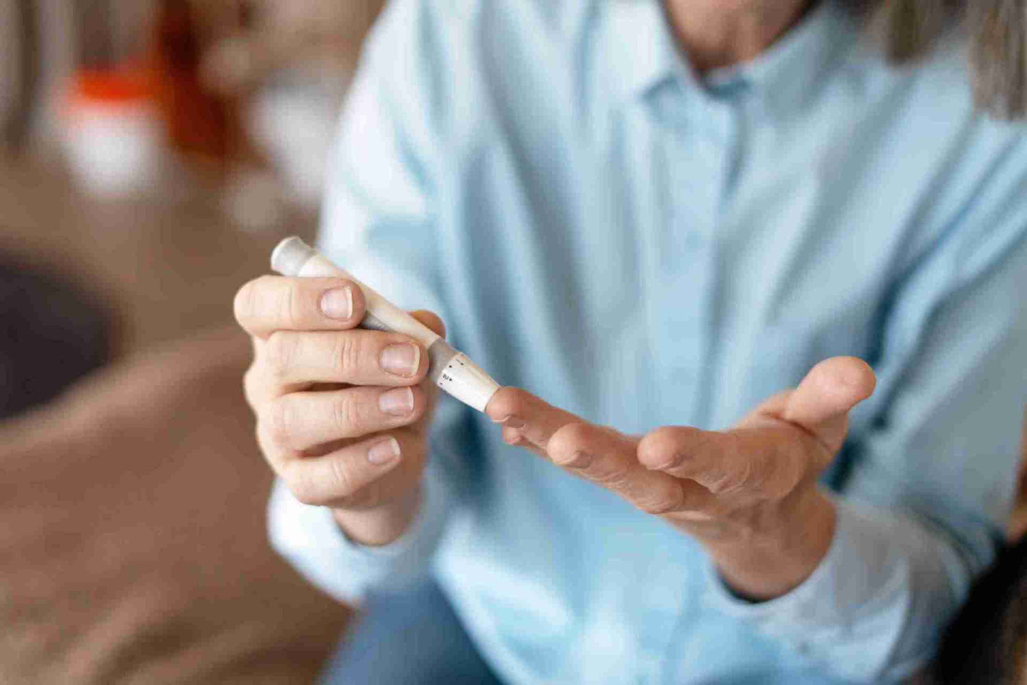 Firmly press the lancet onto the side of your fingertip until it clicks. (Tip: It’s normal to feel a small pinch.)